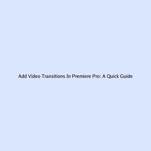 Add Video Transitions In Premiere Pro: A Quick Guide