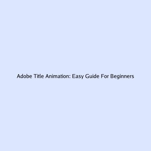 Adobe Title Animation: Easy Guide for Beginners