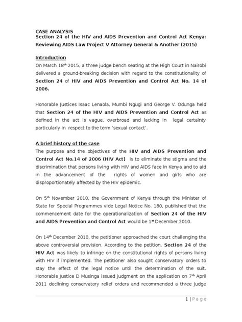 Legal cases concerning public health are often complex and multifaceted, involving intricate considerations of human rights, government responsibilities, and societal well-being. AIDS Law Project v Attorney General & 3 Others [2015] EKLR serves as a notable example of such litigation in the Kenyan legal landscape. This case delves into the intersection of healthcare access, constitutional rights, and governmental obligations, particularly focusing on the provision of essential medical services and the protection of vulnerable populations. Understanding the nuances of this case requires a comprehensive analysis of its factual background, the legal issues presented, the arguments advanced by both sides, and the ultimate decision rendered by the court. This analysis sheds light on the broader implications for public health law and the enforcement of constitutional rights in similar contexts.