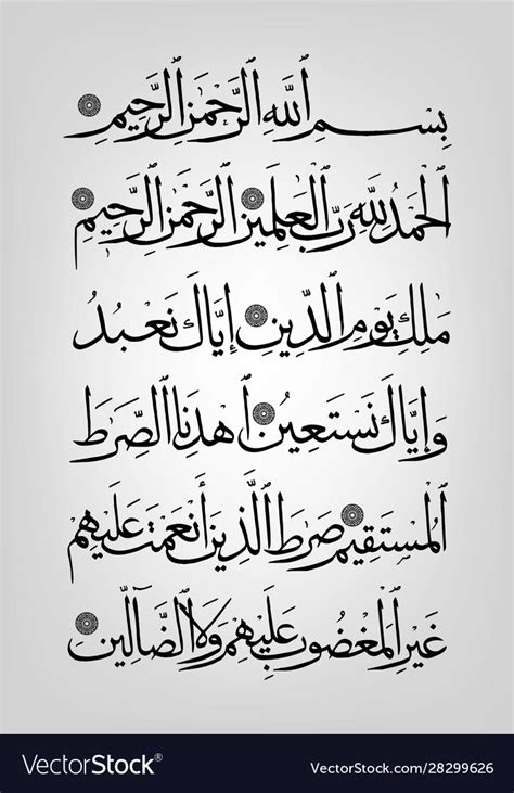 To effectively use Al Fatihah Jawi vectors in your projects, it’s important to consider a few key design principles. First, ensure readability . While the Jawi script is beautiful, it’s essential to ensure that it remains legible in your design. Choose a vector with clear and well-defined characters, and avoid using overly ornate or complex designs that may be difficult to read. Second, consider the context . Think about where and how the vector will be used, and design accordingly. For example, if you’re using the vector on a website, ensure that it is optimized for web viewing and that it complements the overall design of the site. Third, respect the sacredness . Remember that Al Fatihah is a sacred text, so use the vector respectfully and avoid incorporating it into inappropriate or disrespectful designs. Fourth, experiment with colors and effects . Don’t be afraid to play around with different colors, gradients, and effects to enhance the visual appeal of the vector. However, ensure that the colors and effects you choose are appropriate for the context and don’t detract from the readability of the text. Finally, seek inspiration . Look at examples of Islamic art and calligraphy to get inspiration for your own designs. Pay attention to how different artists use the Jawi script and how they incorporate it into various visual elements. By following these design principles, you can create beautiful and meaningful designs that effectively showcase the Al Fatihah Jawi vector.