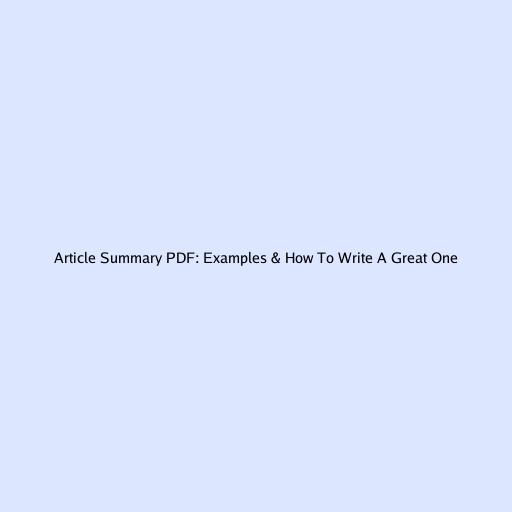 Article Summary PDF: Examples & How to Write a Great One