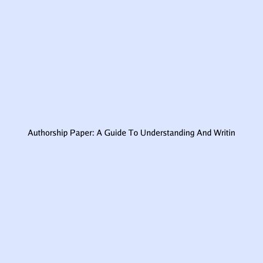 Authorship Paper: A Guide To Understanding And Writing