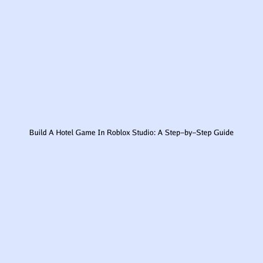 Build A Hotel Game In Roblox Studio: A Step-by-Step Guide
