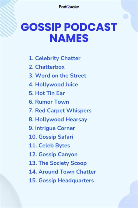 So, ask yourself: What specific sub-genre of gossip are you passionate about? Are you obsessed with the latest A-list hookups and breakups? Do you live for the drama unfolding in the reality TV universe? Perhaps you’re more into political intrigue or the behind-the-scenes stories of your favorite sports teams. Maybe your “iGossip” is actually about startup culture rumors or indie music scene hearsay. Defining this focus is paramount because it will directly inform the tone, keywords, and overall style of your iGossip podcast names . For instance, a podcast about celebrity gossip might lean towards names like “Hollywood Hot Takes” or “The Paparazzi Pulse,” while a show focused on local town gossip might opt for “Main Street Murmurs” or “Our Town’s Tattles.” The name needs to instantly tell potential listeners what juicy secrets they’re about to uncover.