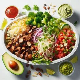 Now that your protein is locked in, it’s time to add the components that give your meal substance and soak up all those incredible flavors: rice and beans. You have several options here, and mixing and matching is totally encouraged. Let’s start with the rice. You can choose between white rice and brown rice . The white rice is fluffy and slightly seasoned with lime and cilantro, offering a neutral base. The brown rice is a healthier alternative, also seasoned with lime and cilantro, providing a slightly nuttier flavor and more texture. Some people love the cilantro-lime profile, while others prefer it plain. It’s all about personal preference, guys . Next up are the beans. You can go for black beans or pinto beans . Black beans are smaller, firmer, and have a slightly earthy flavor. Pinto beans are creamier and have a milder, more classic bean taste. Both are great for adding texture and protein to your meal. Here’s a pro-tip : you can actually get both rice and beans in your bowl or burrito! Many people love the combination of brown rice with black beans, or white rice with pinto beans. You can also choose to have no rice or no beans if you’re trying to cut down on carbs or simply don’t prefer them. For example, a keto-friendly bowl often skips the rice and beans entirely. Honestly , the combination of rice and beans adds a satisfying depth and helps make your meal more filling. Think about what you like: do you prefer the nuttiness of brown rice or the fluffiness of white? Do you lean towards the earthiness of black beans or the creaminess of pinto? Making these choices now sets the stage for the next delicious layers.
