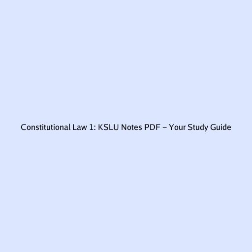 Constitutional Law 1: KSLU Notes PDF - Your Study Guide