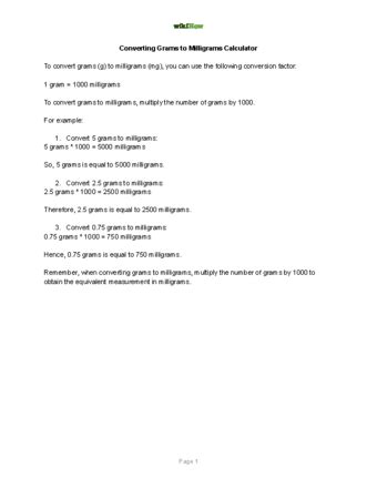 Guys, I want to give you a super handy trick for converting between milligrams and grams that will make you feel like a math wizard. It all comes down to understanding how the decimal point moves. As we established, 1 gram = 1000 milligrams . This means that to convert milligrams (mg) to grams (g), you need to divide by 1000 . And to convert grams (g) to milligrams (mg), you need to multiply by 1000 .