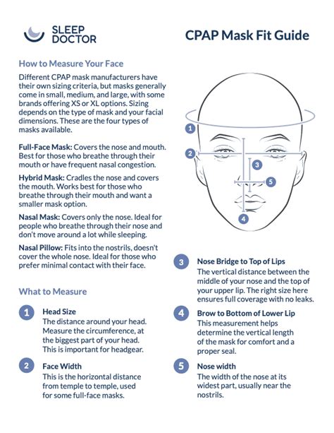 Alright, guys, this is where the rubber meets the road! You’ve understood why sizing matters and the different mask types; now it’s time to get practical and learn how to measure your face for a CPAP mask . This step is non-negotiable for finding that perfect CPAP mask fit . Don’t just eyeball it or guess your size; that’s a surefire way to end up with an uncomfortable, leaky mask. You’ll need a few simple tools, typically a flexible measuring tape (like one for sewing) or even a ruler if you’re careful, and sometimes a mirror can be super helpful. Most importantly, you’ll need the specific sizing guides provided by mask manufacturers. Many brands offer printable templates that you can cut out and hold up to your face, which often makes the process much simpler and more accurate than just using a ruler. When you’re ready to measure, ensure your face is relaxed and in a natural position. For Nasal Pillow Masks , the key measurements often focus on your nostril width or the distance between them. Some manufacturers might ask you to measure the width of one nostril, while others might provide a template to place under your nose to see which pillow size best covers your nostril openings without feeling too big or too small. You want the pillows to sit snugly at the entrance of your nostrils, not inside them entirely, and definitely not too far away causing gaps. For Nasal Masks , you’ll typically be looking at measurements from the bridge of your nose down to your upper lip . With your measuring tape, place one end at the very top of your nose, where the bony part meets the softer cartilage (usually just below the eye line), and extend it straight down to the philtrum (the indent just above your upper lip). This gives you the vertical measurement. Some guides might also ask for a horizontal measurement, usually the width of your nose at its widest point. Hold the measuring tape flat against your face, but don’t press so hard that it distorts your features. For Full-Face Masks , the measurements are a bit more extensive because they cover a larger area. You’ll generally measure from the bridge of your nose (same starting point as the nasal mask) all the way down to just below your lower lip or chin . This ensures the mask cushion will properly encompass both your nose and mouth. Additionally, you’ll often need to measure the width of your face across your cheeks, from one side to the other, to ensure the mask frame and cushion are wide enough without extending too far past your facial structure. Many full-face mask templates will have cutouts for your eyes and mouth, allowing you to visually check alignment. Always follow the specific instructions on the manufacturer’s CPAP mask sizing chart or guide, as they can vary slightly. They are designed to help you pinpoint the precise dimensions needed for their particular mask designs. Remember to take a couple of measurements to ensure accuracy, and if you’re between sizes, it’s often a good idea to consult with your sleep specialist or CPAP provider. They have experience fitting many different faces and can offer valuable insights. This diligence in using measurement tools and following guides will significantly increase your chances of getting a comfortable, leak-free experience right from the start.