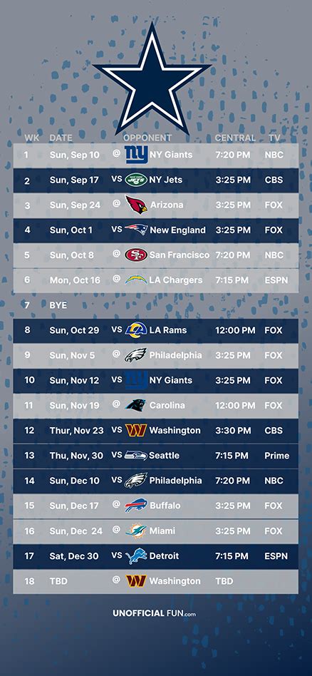In essence, staying informed about the Dallas Cowboys schedule enriches your entire football experience. It’s not just about watching the games; it’s about being part of the Cowboys community and sharing the excitement with fellow fans. So, let’s get into the details and ensure you’re all set for the season!