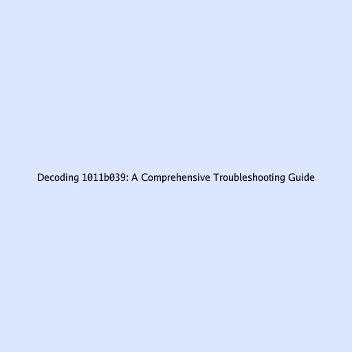 Decoding 1011b039: A Comprehensive Troubleshooting Guide