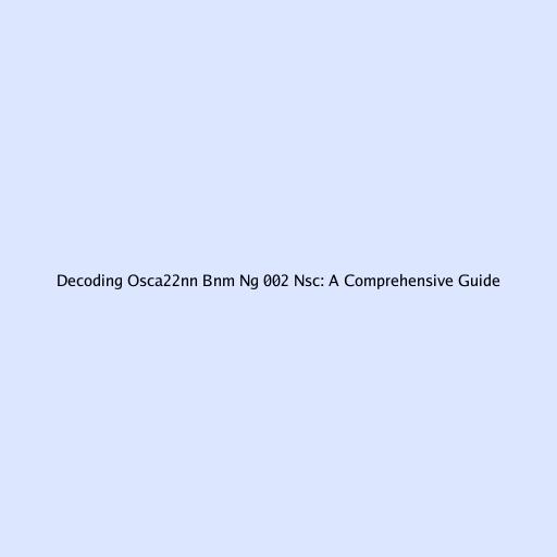 Decoding Osca22nn Bnm Ng 002 Nsc: A Comprehensive Guide