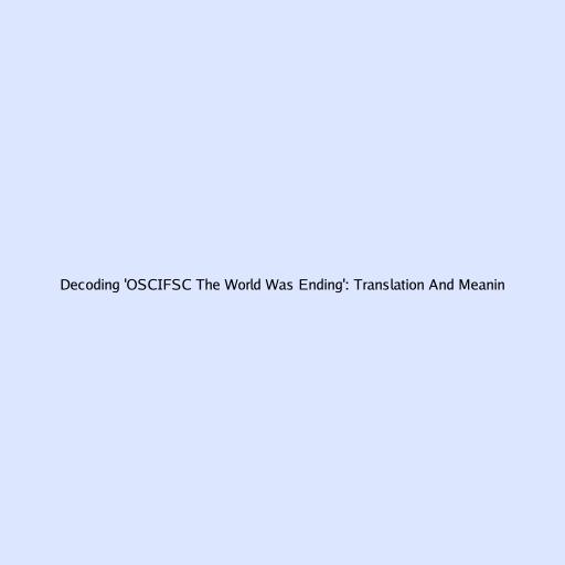 Hey guys! Ever stumbled upon “OSCIFSC The World Was Ending” and scratched your head? You’re not alone! It’s a phrase that’s been buzzing around, and figuring out what it really means can be a bit of a puzzle. Let’s dive deep and decode this intriguing statement, exploring its potential translations, interpretations, and overall significance. We’ll break down the nuances, and hopefully, by the end of this, you’ll have a much clearer understanding of what “OSCIFSC The World Was Ending” is all about. Buckle up; it’s going to be a fascinating ride!