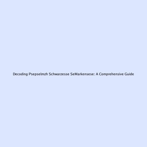 Decoding Psepselmzh Schwarzesse SeMarkensese: A Comprehensive Guide