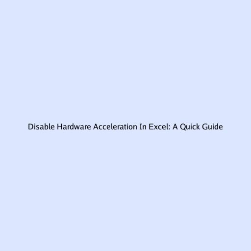 Disable Hardware Acceleration In Excel: A Quick Guide