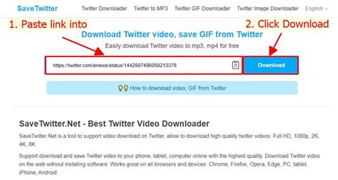 https://twitter.com/username/status/1234567890. - Paste and Download: Head over to an online Twitter video downloader website (we’ll mention a few popular types below, but a quick search for “Twitter video downloader” will give you plenty of options). Paste the tweet URL into the designated input box on the downloader site. Click the “Download” or “Go” button.