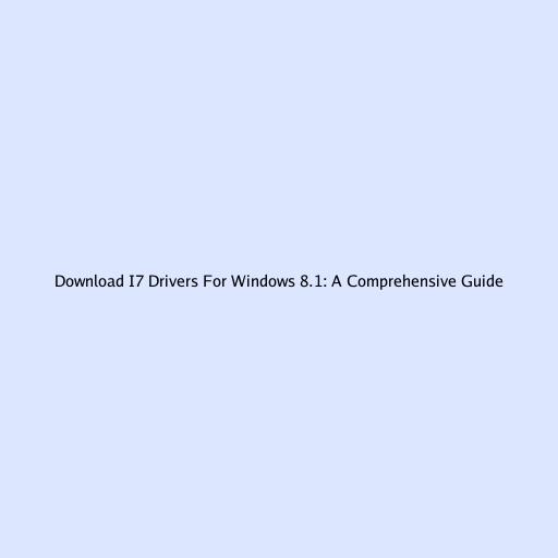 Download I7 Drivers For Windows 8.1: A Comprehensive Guide