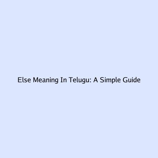 Else Meaning in Telugu: A Simple Guide