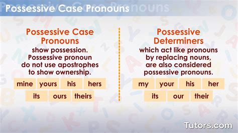 • Absolute Possessive Pronouns : These stand alone and replace a noun phrase. Think: mine, yours, his, hers, its, ours, theirs .