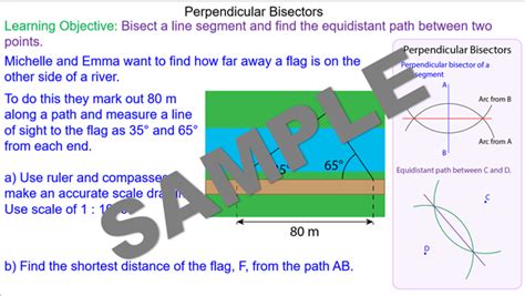 In a triangle, the perpendicular bisectors of the sides meet at a point called the circumcenter. This point is equidistant from the vertices (corners) of the triangle. Equidistance is also relevant in squares, rectangles, and other shapes where symmetry and balance are essential. For example, in an isosceles triangle, the perpendicular bisector of the base also bisects the vertex angle. The application of equidistance extends to various other geometrical concepts. The application of equidistance extends to various other geometrical concepts. In regular polygons, the perpendicular bisectors of the sides also pass through the center of the shape. This is particularly helpful in many other applications and proofs. Also, the point equidistant from all the vertices of a triangle helps in finding the center of the triangle. Understanding these applications helps in solving problems and helps in design in fields like architecture and engineering.