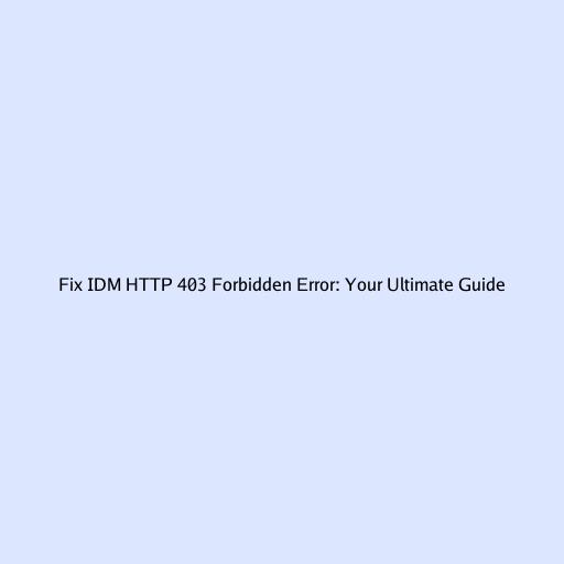 Fix IDM HTTP 403 Forbidden Error: Your Ultimate Guide