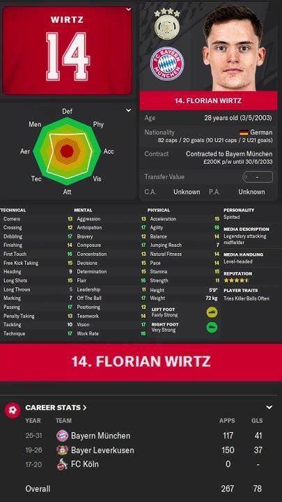 Alright guys, let’s dive into the electrifying world of Football Manager 2023 and talk about one of the hottest young talents out there: Florian Wirtz. If you’re a regular on the FM circuit, you’ve probably heard the name, and if you haven’t, well, buckle up because this kid is something else. We’re talking about a player who, even at a young age, possesses a level of skill and maturity that belies his years. In FM23, Wirtz isn’t just a good player; he’s a game-changer , a potential superstar who can elevate any team lucky enough to snatch him up. Whether you’re managing a Premier League giant or a lower-league team with ambitions, understanding Wirtz’s capabilities and how to utilize him is key to unlocking some serious success. He’s the kind of player who can create magic out of thin air, thread those impossible passes, and find the back of the net with a regularity that makes you wonder if you’re playing with a cheat code. This guide is all about breaking down exactly why Wirtz is so highly-rated in Football Manager 2023, what makes him a must-have asset, and how you can get the best out of him on your save. We’ll cover his stats, his potential, and the tactical approaches that best suit his unique skillset. So, grab your favorite brew, get comfy, and let’s get down to business dissecting the brilliance of Florian Wirtz in FM23.