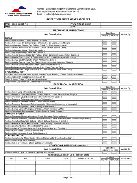 Hey guys, let’s dive into something super important: the Genset Inspection Report . You know, that document that’s like the health checkup for your generator set? Whether you’re running a business, managing a building, or just want to make sure your backup power is ready to roll, understanding the Genset Inspection Report is key. We’ll break down what it is, why it matters, and how to make sure your genset is in tip-top shape. This guide will help you navigate the ins and outs of this critical document.