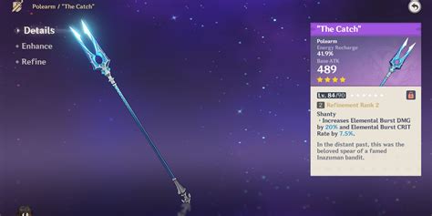 This is arguably the poster child for the Fisherman’s Catch . The Raiden Shogun’s entire kit revolves around her powerful Elemental Burst, Musou Shinsetsu. The increased Burst DMG and CRIT Rate from the Fisherman’s Catch directly amplify her primary damage output. At R5, the stats it provides are incredibly competitive, even against her signature weapon, Engulfing Lightning, in certain scenarios, especially for F2P players. If you’re building Raiden Shogun for her burst damage, this polearm is a no-brainer. It allows her to hit incredibly hard with her lightning strikes, making her an amazing Sub-DPS or Main-DPS.