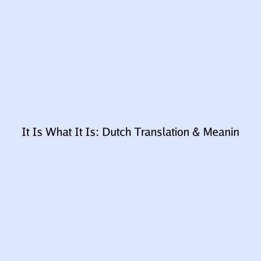 It Is What It Is: Dutch Translation & Meaning