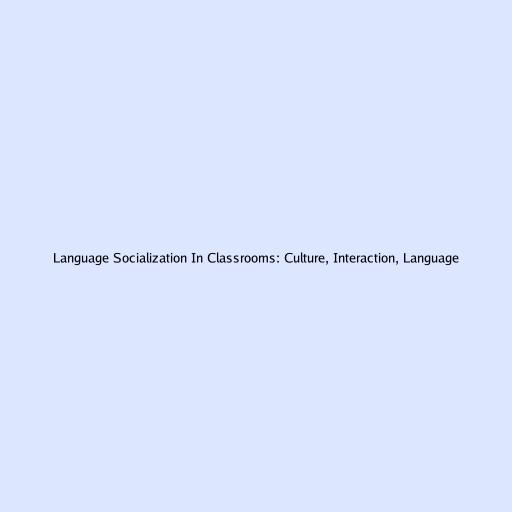 Language Socialization In Classrooms: Culture, Interaction, Language