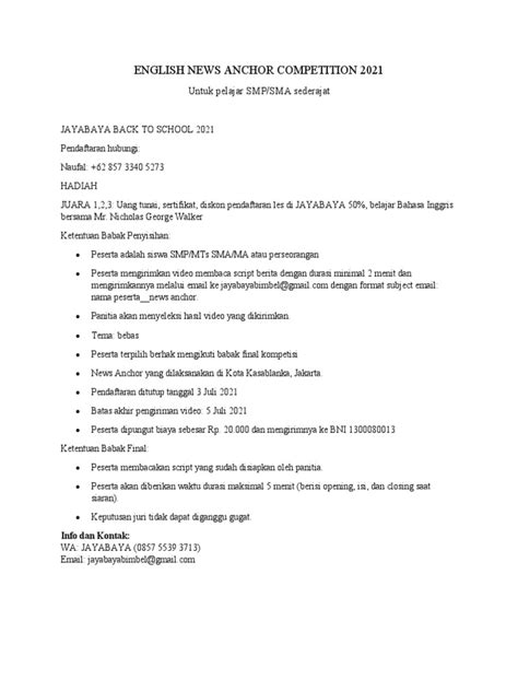 Mastering English News Anchor Competitions: Your Path to Broadcast Stardom!Hello there, future broadcasters and amazing public speakers! Ever found yourself watching those incredibly articulate news anchors on TV, delivering the day’s headlines with such finesse and confidence, and thought, ‘Hey, I could totally do that!’? Well, guess what, guys? You absolutely can, especially when it comes to an English news anchor competition ! These exciting contests are not just about reading news; they’re a fantastic platform to showcase your public speaking prowess , English fluency , and your ability to command an audience with your voice and presence. In today’s globalized world, having strong English communication skills is a huge advantage , and participating in such an event can open up a world of opportunities, whether you dream of a career in journalism, media, or simply want to boost your confidence in speaking in front of others. This comprehensive guide is going to walk you through everything you need to know, from understanding the core elements of these competitions to preparing like a true pro, ensuring you’re not just participating, but shining on that stage. We’ll delve into the nitty-gritty of pronunciation , intonation , script delivery , and even impromptu speaking , because hey, a great anchor is always ready for anything! So, buckle up, because we’re about to embark on an exciting journey to help you conquer the world of English news anchoring! We’ll cover how to impress the judges, capture the audience’s attention, and ultimately, walk away feeling like a champion. This isn’t just about winning a prize; it’s about developing lifelong skills that will serve you well in any professional or personal endeavor. So, let’s get ready to transform you into an unforgettable English news anchor! We’re talking about sharpening your wit, perfecting your delivery, and exuding that undeniable charisma that makes a true broadcasting star. Imagine yourself confidently delivering breaking news, engaging your audience, and leaving a lasting impression. That’s the goal, and we’re going to help you get there, step by exciting step. It’s time to unleash your inner broadcast journalist and show everyone what you’re made of. Remember, every great journey begins with a single step, and your journey to mastering the English news anchor competition starts right here, right now. Get ready to learn, grow, and ultimately, succeed! The stage is waiting for you, and we’re here to make sure you’re absolutely prepared to own it. From your vocal warm-ups to your final impactful sign-off, we’ve got you covered. This is more than just a competition; it’s a chance to build skills, make memories, and perhaps even discover a hidden passion. So, let’s dive into the fascinating world of English news anchoring and discover how you can excel!The journey to becoming a compelling English news anchor begins with understanding the foundations, and that’s precisely what we’ll be exploring in the upcoming sections. We’re talking about breaking down the complex art of news delivery into manageable, actionable steps that anyone, with dedication and practice, can master. This guide is designed to be your ultimate companion, offering insights, tips, and strategies gleaned from years of observing and participating in public speaking and broadcasting. So, whether you’re a beginner just dipping your toes into the world of English news or a seasoned speaker looking to refine your technique, there’s something here for everyone. Let’s make you shine!## What Exactly is an English News Anchor Competition and Why Should You Join?An English news anchor competition is, at its core, an exciting event designed to test and celebrate participants’ abilities to deliver news in English, much like professional news anchors do on television or radio. Think of it as a mini-broadcast studio experience where you get to step into the shoes of a news reader, but with an added competitive edge! These events are incredibly popular in schools, universities, and various youth organizations because they offer a unique blend of language learning, public speaking practice, and performance art. Participants are typically judged on a range of criteria including their pronunciation , intonation , grammar , vocabulary , overall fluency , and perhaps most importantly, their presence and charisma on stage. You might be asked to read a pre-prepared news script, deliver an impromptu segment on a current event, or even engage in a mock interview. The format can vary, but the essence remains the same: showcasing your ability to communicate clearly, confidently, and compellingly in English.Joining an English news anchor competition offers a ton of fantastic benefits, guys. First off, it’s an incredible way to sharpen your English proficiency . You’ll naturally expand your vocabulary, improve your sentence structure, and gain a deeper understanding of how news is articulated in English-speaking media. This isn’t just about textbook learning; it’s about practical, real-world application of your language skills. Secondly, these competitions are a powerhouse for developing public speaking skills . Standing in front of an audience, whether small or large, and delivering information with poise is a skill that transcends the competition stage. It builds immense confidence , teaches you how to manage nerves, and helps you project your voice and personality effectively. You’ll learn the art of maintaining eye contact , using appropriate body language , and engaging your listeners, which are all critical for success in any field requiring communication.Moreover, participating in an English news anchor competition can be a significant step towards a potential career in journalism or broadcasting . Many professional anchors started their journey by honing their skills in similar contests. It provides invaluable exp