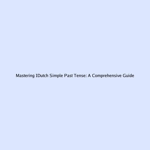 Mastering IDutch Simple Past Tense: A Comprehensive Guide