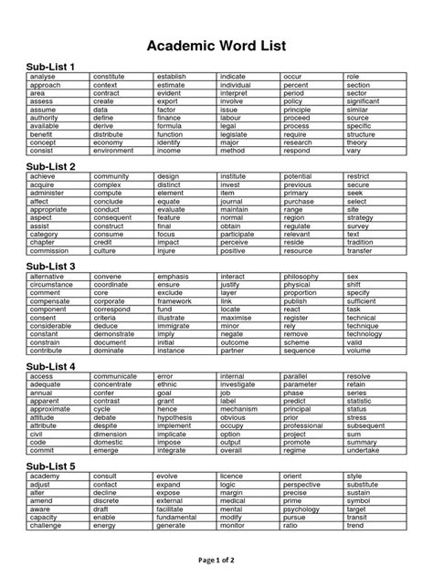 First things first, remember that the AWL isn’t just one giant list; it’s broken down into ten sublists, ordered by frequency. Sublist 1 contains the most frequently used words, while Sublist 10 has the less common ones (but still important!). This structure is your friend! Don’t try to tackle all 570 word families at once. Instead, focus on mastering one sublist at a time, starting with Sublist 1. This gives you a sense of accomplishment and ensures you’re learning the most impactful words first. As you progress, you’ll notice how words from earlier sublists form the foundation for understanding those in later ones. For example, words like analyse , approach , area , assess , assume , authority , available , benefit , concept , consistent , constitute , context , contract , create , data , define , derive , distribute , economy , environment , establish , estimate , evident , export , factor , finance , formula , function , identify , income , indicate , individual , interpret , involve , issue , labour , legal , legislate , major , method , operate , option , percentage , period , policy , principle , proceed , process , require , research , respond , role , section , sector , significant , similar , source , specific , structure , theory , and vary from Sublist 1 are the absolute bread and butter of academic discourse. Mastering these first will give you a huge leg up in comprehension and expression across almost any academic discipline you encounter. Take your time with each sublist, making sure you don’t just recognize the words, but truly understand their meanings, common collocations, and how they function in different sentences.
