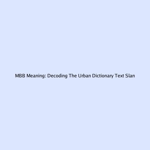 MBB Meaning: Decoding The Urban Dictionary Text Slang