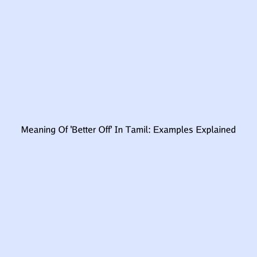 Hey everyone! Ever stumbled upon the phrase “better off” and wondered what it actually means, especially when you’re trying to grasp it in Tamil? You’re in the right spot, guys. Today, we’re diving deep into the meaning of “better off” and how to use it, complete with plenty of Tamil examples. Understanding this phrase is super useful for everyday conversations and really helps you express nuanced ideas. So, let’s get this party started and break down “better off” like never before!