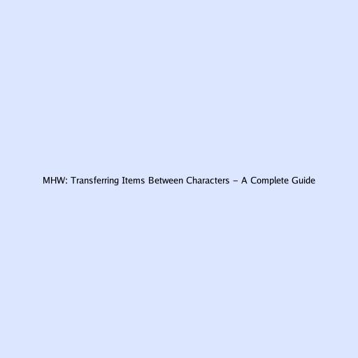 MHW: Transferring Items Between Characters - A Complete Guide