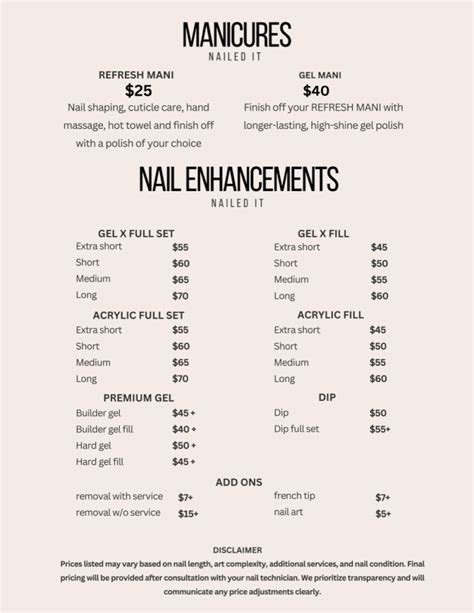 Hey guys! Ever wondered about the Nailed It salon prices for that killer manicure or those show-stopping extensions? You’ve come to the right place! We’re diving deep into what you can expect to shell out at Nailed It, breaking down the costs so you can budget like a pro and walk out with nails that are absolutely to die for . Knowing the price beforehand is super important, whether you’re a regular or planning your first visit. It helps you choose the service that best fits your budget and your nail dreams. So, grab your favorite drink, get comfy, and let’s get into the nitty-gritty of Nailed It pricing!