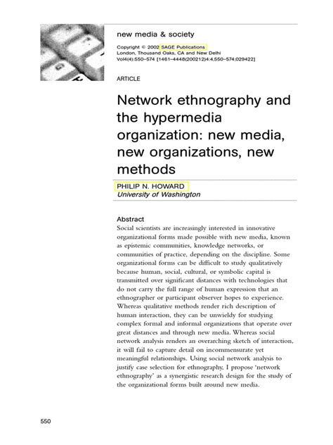 Network Ethnography: New Media, Organizations, And Methods