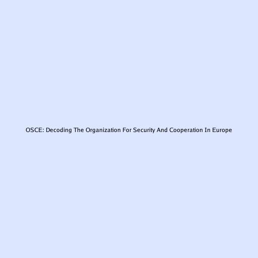 OSCE: Decoding The Organization For Security And Cooperation In Europe