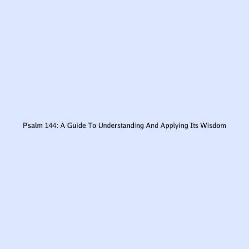 Psalm 144: A Guide To Understanding And Applying Its Wisdom