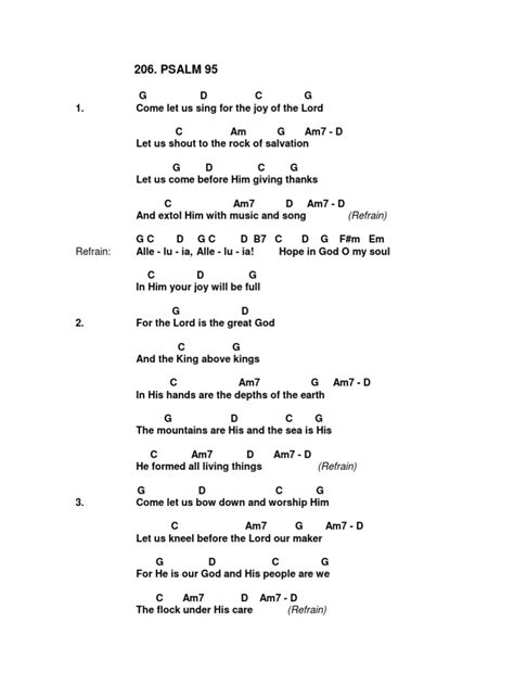 Hey everyone! Today, we’re diving deep into the powerful Psalm 95 , a cornerstone of faith, and specifically, we’ll be exploring the Psalm 95 lyrics in English as sung by the Couples for Christ (CFC) community. This psalm is a call to worship, a reminder of God’s greatness, and a prompt for us to respond with joyful praise. We will explore the meaning, significance, and application of this beautiful piece of scripture. Whether you’re a seasoned believer or just starting your journey, understanding Psalm 95 can enrich your spiritual life and deepen your connection with God. So, grab a cup of coffee, and let’s get started. We’ll be looking at the lyrics, the context, and how we can apply the message to our lives. Let’s make this exploration super engaging and accessible for everyone. It’s like having a friendly chat about faith, music, and how they intertwine. The main focus here is to understand the core message of the psalm and how it can affect our everyday lives.