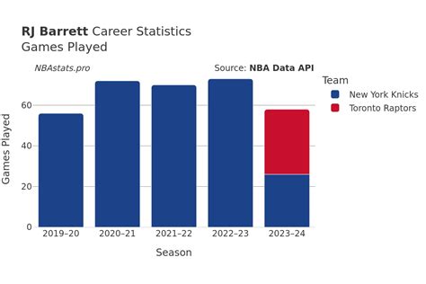 Comparing RJ Barrett’s stats from the last 10 games with his season averages provides valuable context. It helps us determine whether he’s currently performing above, below, or at par with his usual standards. If his recent stats are significantly higher than his season averages, it could indicate that he’s in a particularly good form or that he has made adjustments to his game that are paying off. On the other hand, if his recent stats are lower than his season averages, it could suggest that he’s going through a slump or that he’s facing challenges that are impacting his performance. For example, if his points per game in the last 10 games are higher than his season average, it could mean that he’s been more aggressive in attacking the basket or that he’s been shooting with greater confidence. If his three-point percentage is up, it could indicate that he’s been putting in extra work on his shooting or that he’s been getting better looks from beyond the arc.