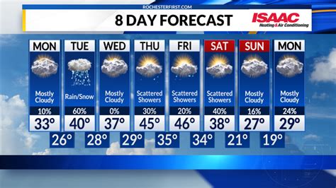 Okay, so let’s get down to the nitty-gritty: the daily weather outlook for Rochester, NY. Each day, we’ll be providing you with essential details. You’ll find the expected high and low temperatures, giving you a clear picture of the temperature range throughout the day. We’ll also highlight the probability of precipitation – whether it’s rain, snow, or sleet – so you know if you need to pack an umbrella or snow boots. Wind speed and direction are crucial too, especially if you’re planning outdoor activities or just want to know if it’s going to be a breezy day. We’ll also touch upon sky conditions, such as sunny, partly cloudy, or overcast, which can affect how the temperature feels. For those early birds, we’ll give you a heads-up on sunrise and sunset times, and for the night owls, information about moon phases if that’s your thing. Understanding these daily patterns helps you adapt your plans and stay comfortable. For instance, a seemingly warm day might feel cooler with a strong lake breeze, or a cloudy morning could give way to a bright, sunny afternoon. We aim to provide a comprehensive overview that goes beyond just numbers, offering insights into how the weather might feel . This detailed daily forecast is your go-to resource for making informed decisions, from choosing your outfit to scheduling outdoor events. We want to empower you with the knowledge to navigate Rochester’s dynamic weather with ease, ensuring you’re always prepared for whatever the day throws at you. Stay tuned for the latest updates as conditions can change!