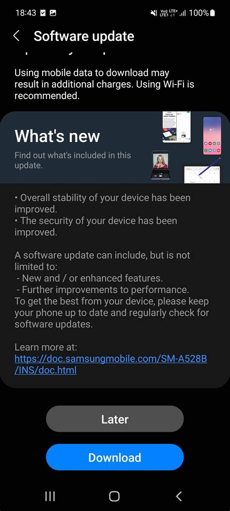 4. Tap on Download and Install: In the software update settings, you’ll see an option that says Download and install . Tap on this option to check for available updates. Your phone will then connect to the Samsung servers and check if there’s a new software version available for your device.