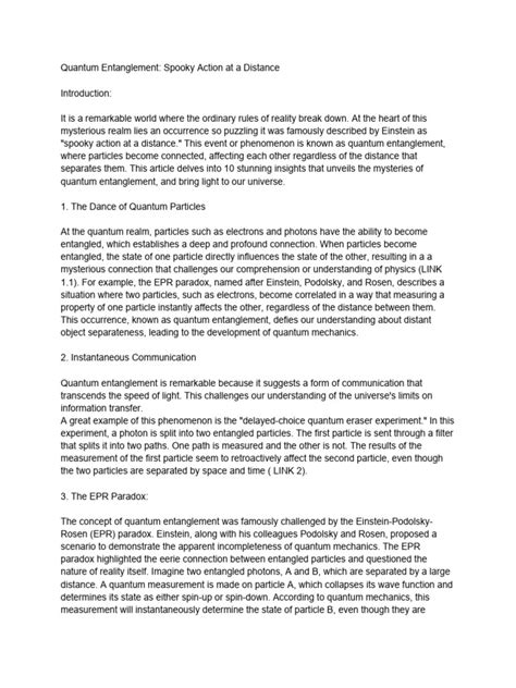 Spooky Action At A Distance: Unveiling Quantum Entanglement
