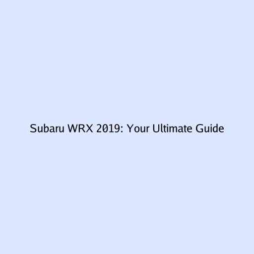 Subaru WRX 2019: Your Ultimate Guide