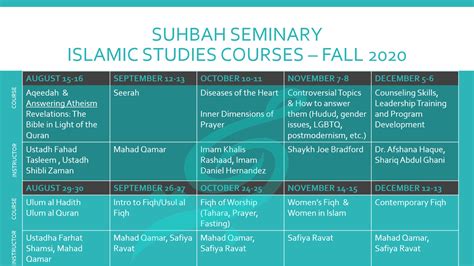 Alright, let’s get into the juicy details – the programs and courses offered at Suhbah Institute . Whether you’re interested in foundational studies or advanced research, there’s likely something for you. These programs are designed to cater to a wide range of interests and academic goals, ensuring that every student finds a path that suits their needs. The institute offers introductory courses in Islamic studies, perfect for beginners looking to build a solid foundation. These courses cover essential topics such as the Quran, Hadith, Islamic law, and ethics, providing a comprehensive overview of the core principles of Islam. For those seeking a more in-depth understanding, Suhbah Institute provides advanced programs focusing on specific areas of Islamic knowledge. These programs often include specialized courses in Islamic theology, jurisprudence, and history, allowing students to delve deeper into their areas of interest. In addition to traditional academic courses, the institute offers practical workshops and seminars designed to enhance students’ skills in areas such as leadership, communication, and community service. These workshops aim to equip students with the tools they need to become effective leaders and positive contributors to their communities. Furthermore, Suhbah Institute provides opportunities for students to engage in research projects, allowing them to explore new ideas and contribute to the advancement of Islamic knowledge. These research initiatives are often conducted under the guidance of experienced scholars, providing students with valuable mentorship and support. By offering a diverse range of programs and courses, Suhbah Institute ensures that students have access to a comprehensive and enriching educational experience, preparing them for success in their academic and professional pursuits. The flexibility of the programs allows students to tailor their education to their individual goals, making Suhbah Institute a valuable resource for anyone seeking to deepen their understanding of Islam.