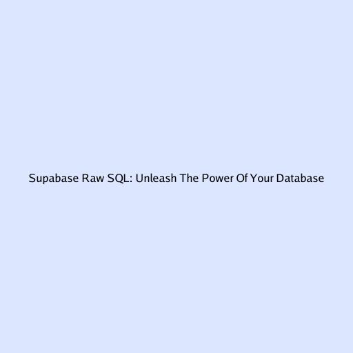 Hey guys! Ever felt like you’re just scratching the surface with Supabase and want to dive deeper? Well, get ready to unleash the true power of your database with raw SQL ! In this article, we’re going to explore what raw SQL is, why you should care about it, and how you can use it within your Supabase project to perform advanced queries and operations. So, buckle up and let’s get started!