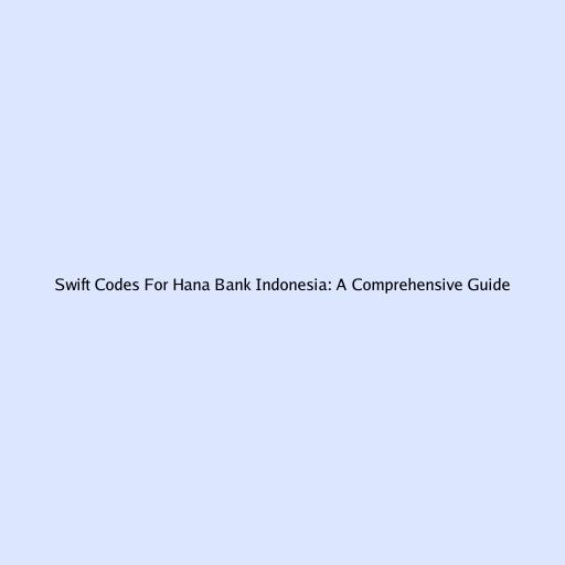 Swift Codes for Hana Bank Indonesia: A Comprehensive Guide