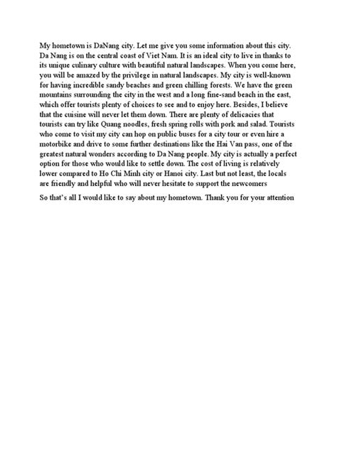 So, you’ve been asked about your hometown, and you’re ready to share. Where do you even begin? Let’s break down the essential building blocks. First off, location, location, location! Where exactly is your hometown? Is it a bustling city in the heart of a country, a quiet village by the sea, or maybe a town nestled in the mountains? You can use phrases like: “My hometown is located in the [north/south/east/west] of [country/region].” or “It’s situated about [number] hours from [major city].” For example, you could say, “My hometown is located in the northern part of Italy, about a two-hour train ride from Milan.” See? Simple and effective. Next up, let’s talk about size and population . Is it a sprawling metropolis or a cozy little place? You can say: “It’s a large city with a population of around [number] million people.” or “It’s a small town, more like a village, with only about [number] thousand inhabitants.” Or maybe it’s somewhere in between: “It’s a medium-sized city, not too big and not too small.” Then, let’s consider the general vibe or atmosphere . Is it lively and energetic, peaceful and quiet, historic and charming, or modern and fast-paced? Use adjectives like vibrant , tranquil , historic , bustling , sleepy , modern , industrial , or picturesque . For instance, “It’s a really vibrant city with a lot of young people and a lively nightlife,” or “It’s a very tranquil place, perfect for people who enjoy nature and a slower pace of life.” Don’t forget to mention if it’s coastal, inland, or mountainous . This gives a great visual. “It’s a coastal town, famous for its beautiful beaches,” or “It’s an inland city surrounded by rolling hills.” These basic descriptions are the foundation, the skeleton of your hometown story. They provide context and help your listener paint a mental picture. Remember, you don’t need to write a novel here; just a few key details to set the scene. We’ll build on this with more colorful details in the next sections. So, get these basics down, and you’re already halfway there!