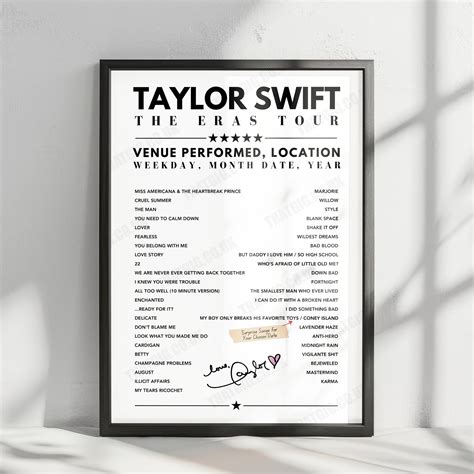 - Hang it in Your Music Room: If you have a dedicated music room or listening space, your setlist poster will be right at home there. It’s the perfect way to add a touch of Taylor Swift to your musical sanctuary.